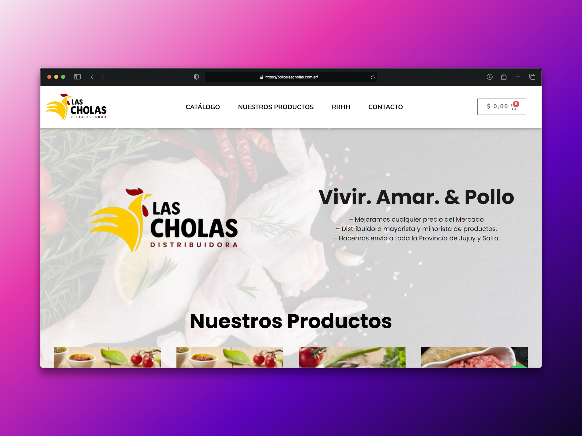El sitio web de Pollos Las Cholas se consolidó como una tienda digital eficiente para la venta y distribución de productos avícolas y carnes, aumentando la accesibilidad a sus productos y reforzando su presencia comercial en el norte argentino.