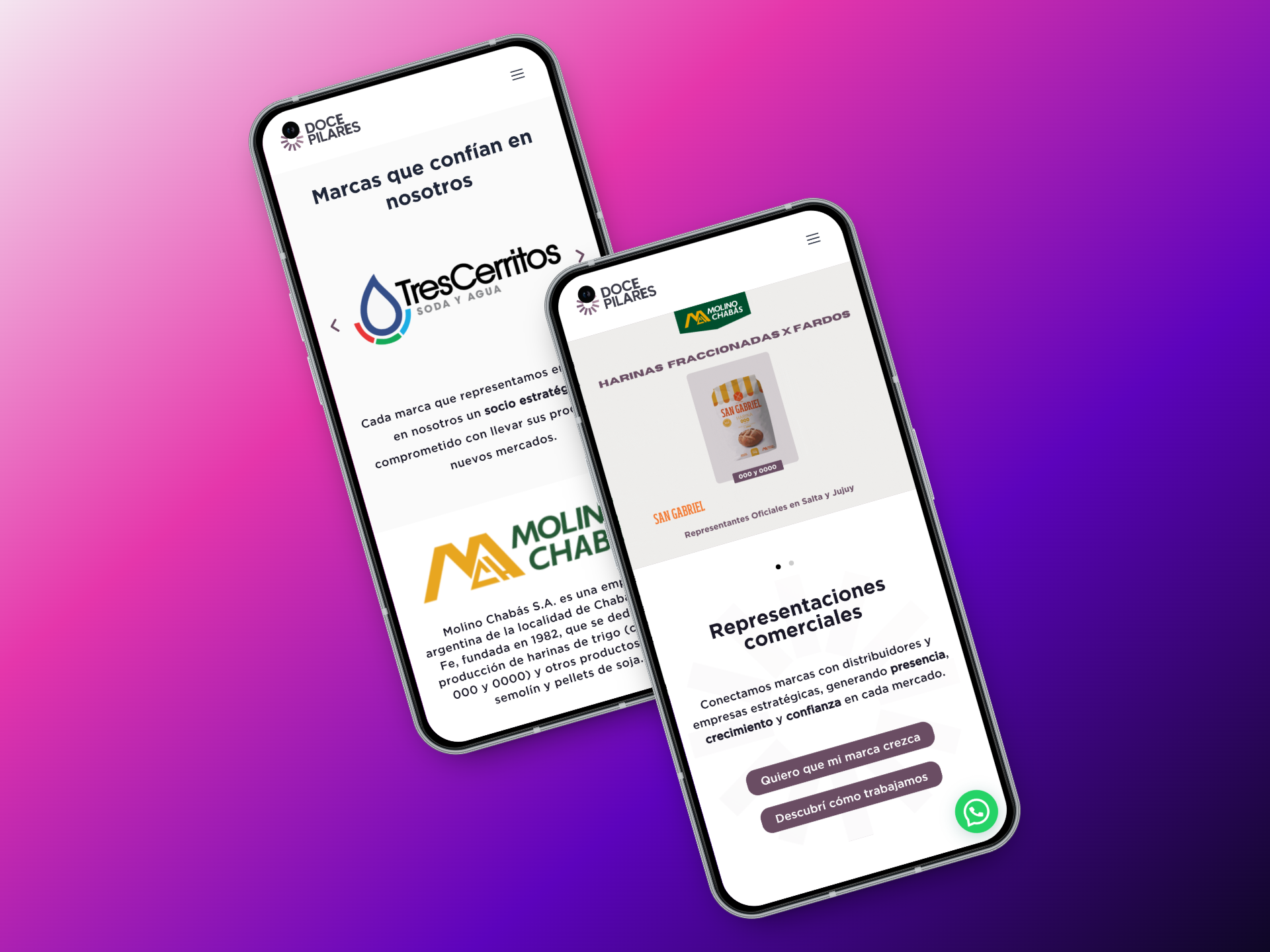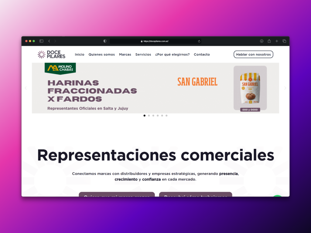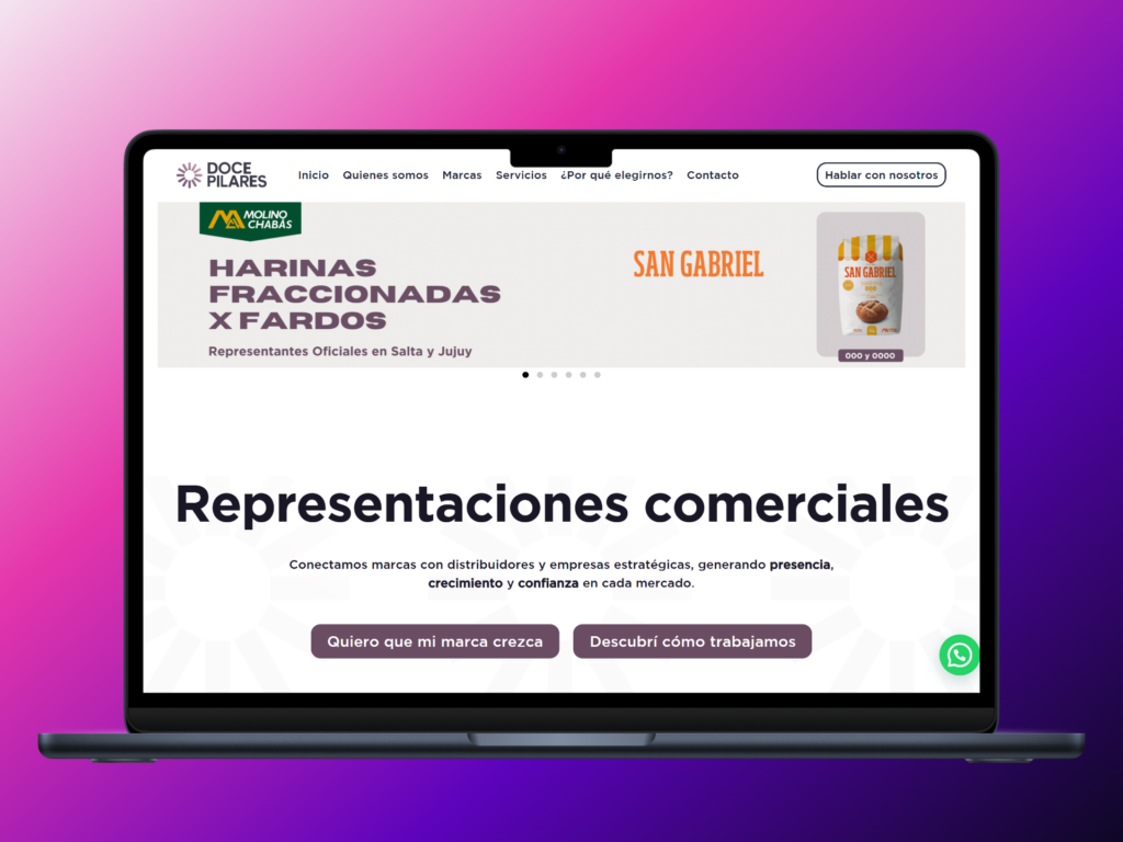 Doce Pilares necesitaba una plataforma digital profesional que reflejara su rol como representante estratégico de marcas, destacando su enfoque en comercialización, posicionamiento y expansión territorial de productos de consumo masivo, y consolidando su identidad como socio de crecimiento de marcas.