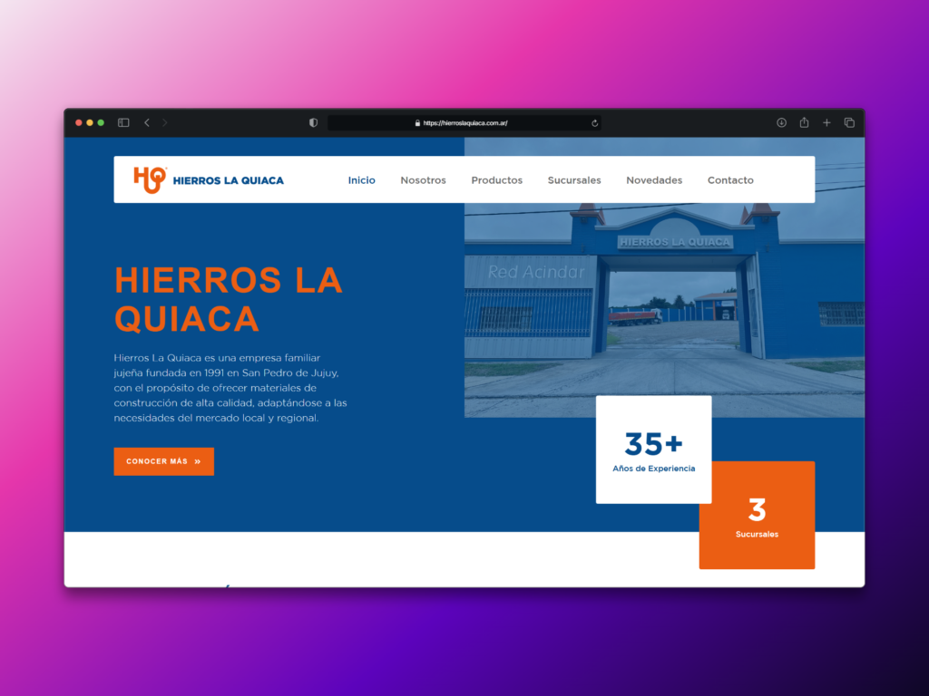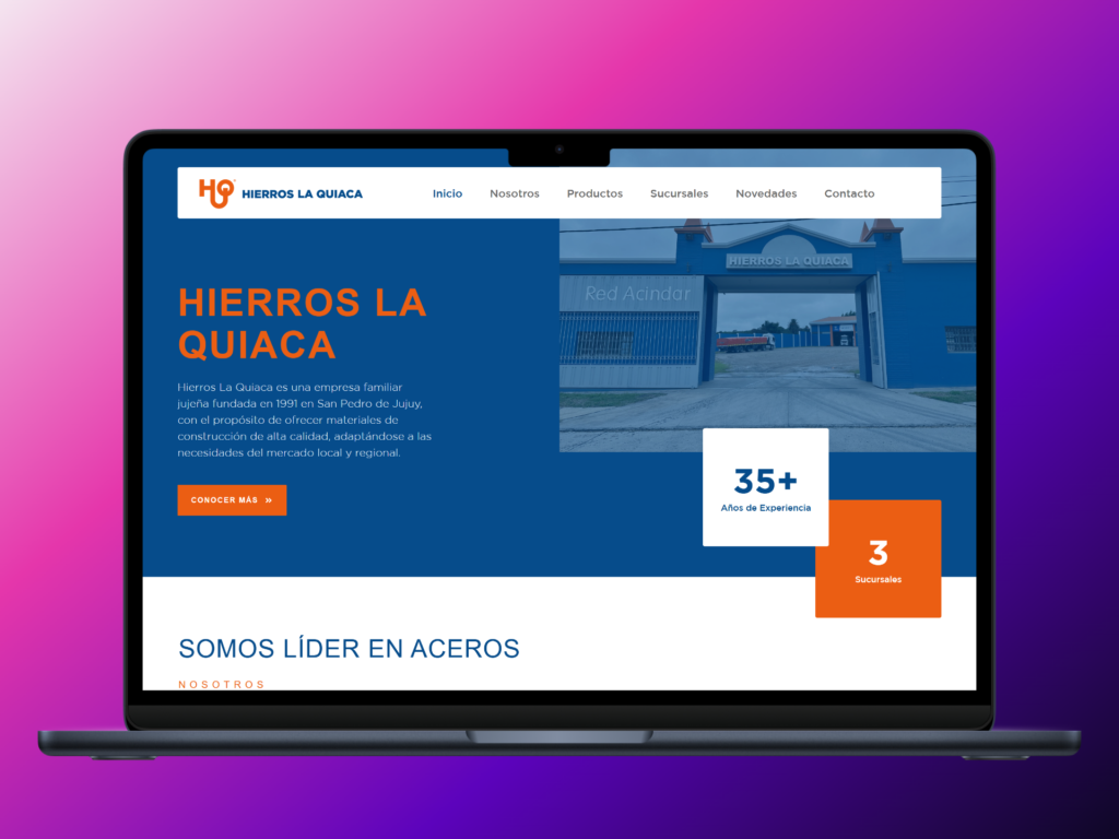 Hierros La Quiaca necesitaba una presencia digital clara y profesional para presentar su catálogo de productos (aceros, hierros, perfiles, mallas y chapas), mostrar sus sucursales y reforzar su reputación como proveedor confiable en el sector de la construcción y metalurgia regional.